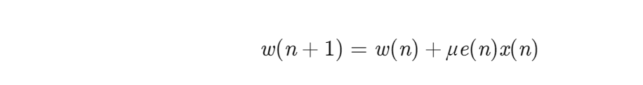 LMS算法通过迭代调整滤波器权重,最小化输出误差的均方值。其核心公式为: