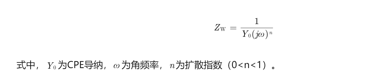 基于锂离子电池的电化学过程,构建包含欧姆阻抗(Rb)、SEI膜阻抗(Rsei+Csei)、电荷转移阻抗(Rct+Cdl)及扩散阻抗(W)的等效电路模型。其中,W采用常相位元件(CPE)模拟非理想扩散行为,其阻抗表达式为: