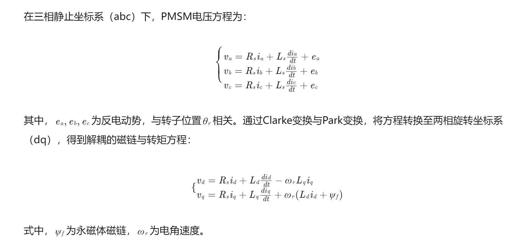二、永磁同步电机数学模型与控制原理