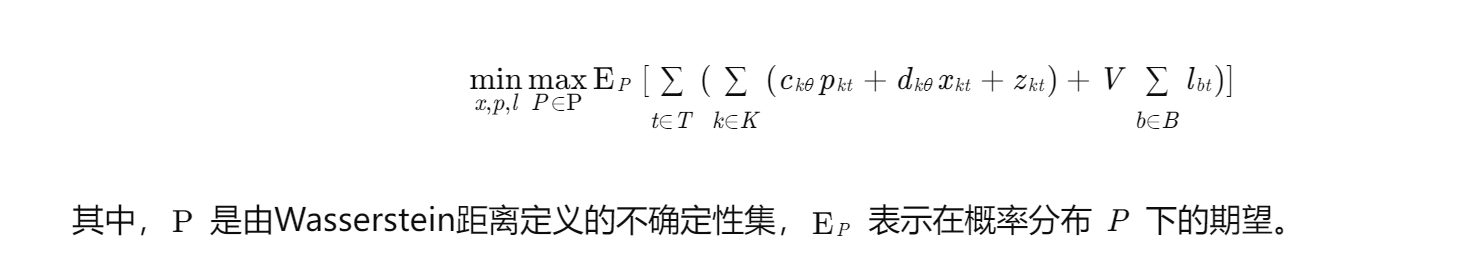 - 假设风力发电的出力具有不确定性,其真实分布属于一个由Wasserstein距离定义的不确定性集。