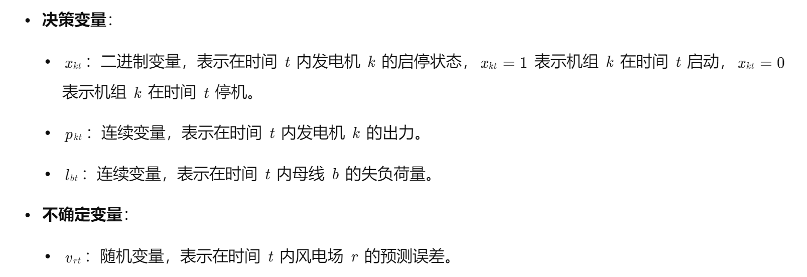 - 不确定性集约束:基于Wasserstein距离定义的不确定性集对风电预测误差 vrt 的分布进行约束。
