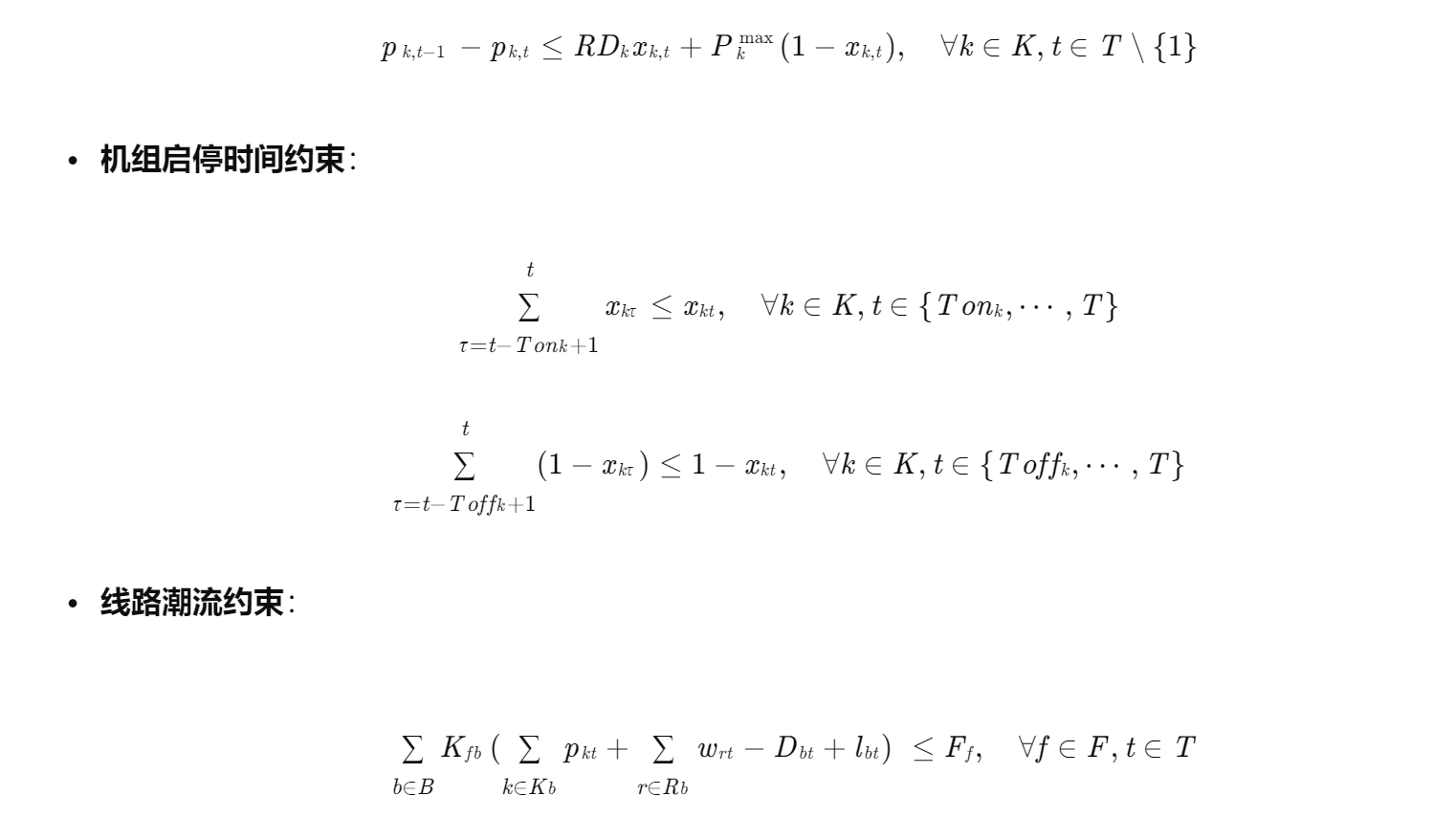 - 建立电力系统模型,定义优化目标为最小化总运行成本,确定上述约束条件。