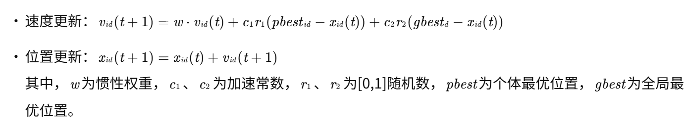PSO通过粒子位置与速度的迭代更新搜索全局最优解。