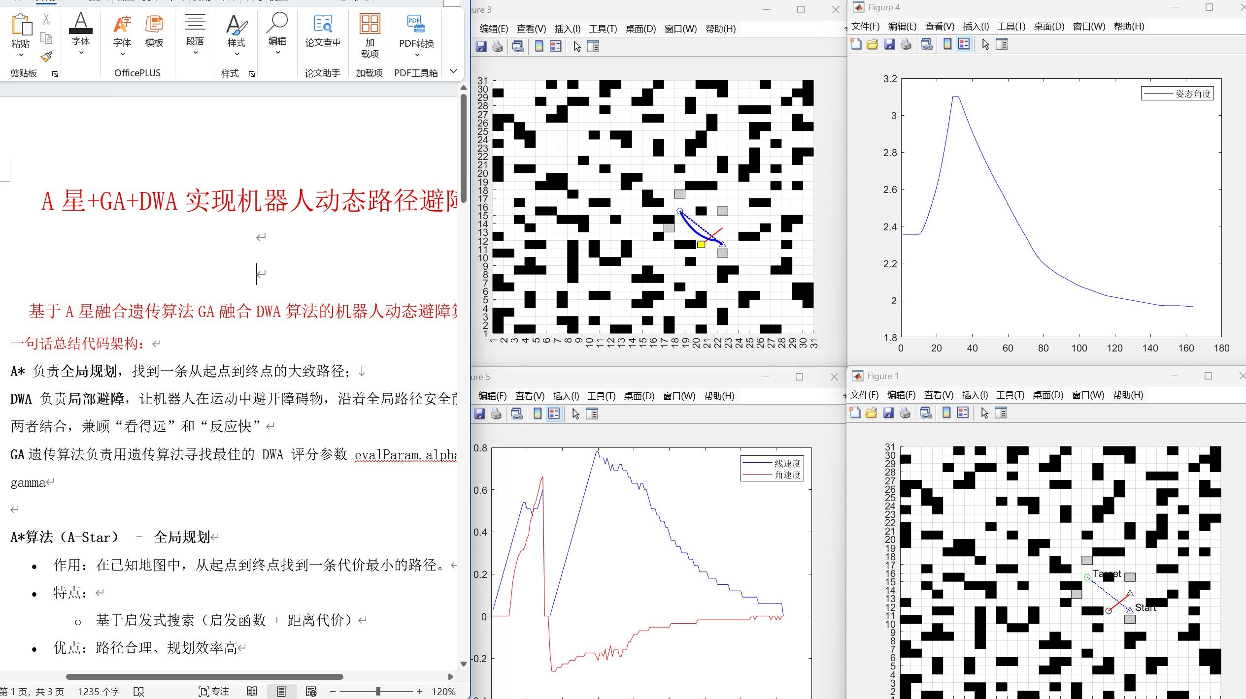 - 反馈修正层:若DWA检测到不可行路径,触发A星局部重新规划,并更新GA种群。