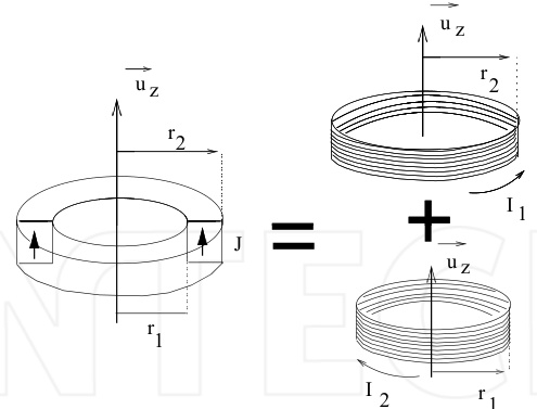 - 安培等效模型:分解为同心圆环电流(图2,)。