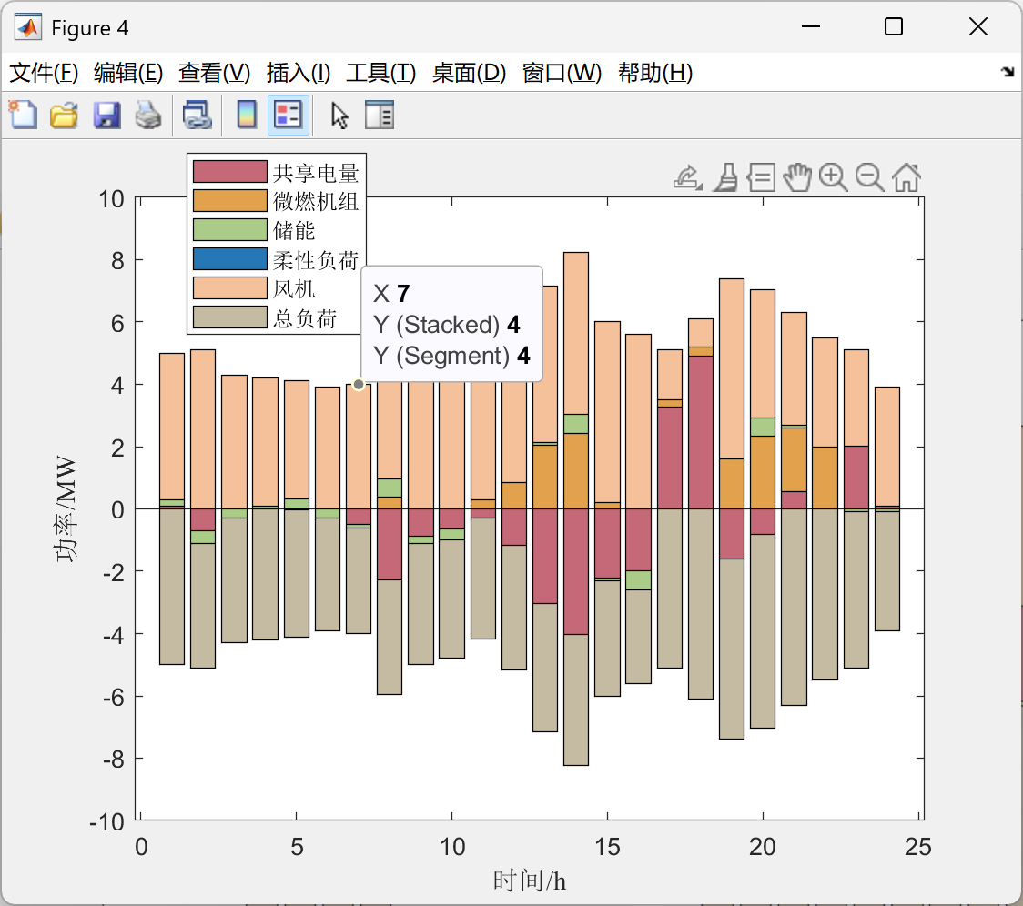 S_ES(1)==0.4-P_ES(1)/1, %储能设备的0-1时段的SoC约束,取初始SoC为0.4