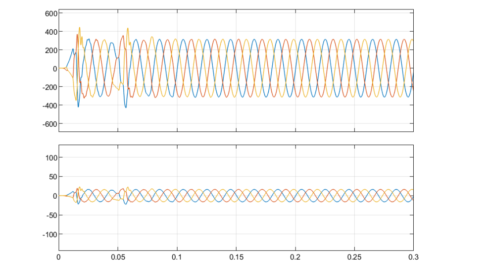 由图4.12可以看出输出级输出的负载电压三相对称,能够得到稳定的三相电压,并且电压电流波形均能实现良好的正弦度。