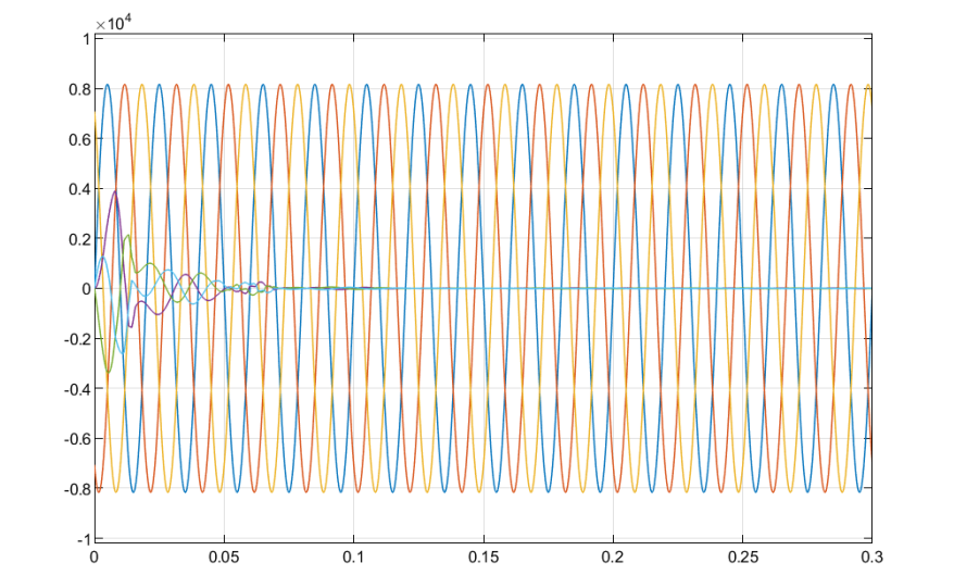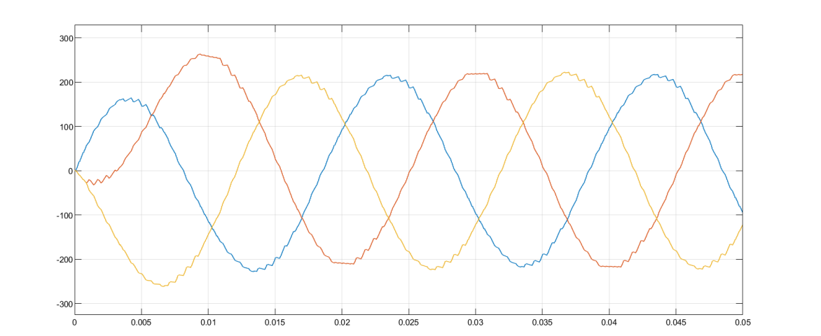 图为输出环节在额定负载下的三相电压输出波形图,由图可以看出可以输出的稳定且三相对称的三相电压,且波形可以达到良好的正弦度。