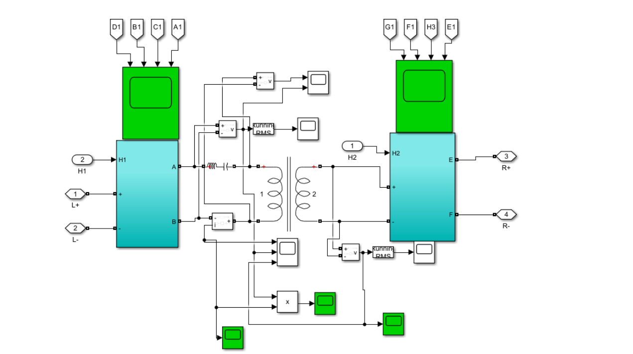 隔离环节的作用主要是调整电压等级并隔离原边和副边。它的主要结构是双向有源桥变流器,连接到输入和输出环节的直流端口。
