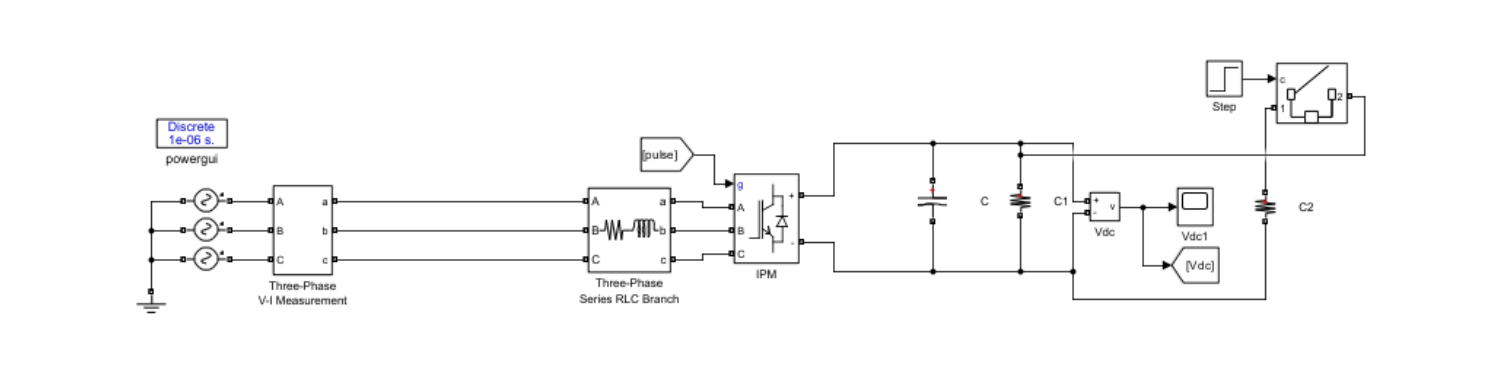- 中间直流环节:核心能量缓冲枢纽,包含支撑电容(CdcCdc)及可能的谐振回路(LC),用于: