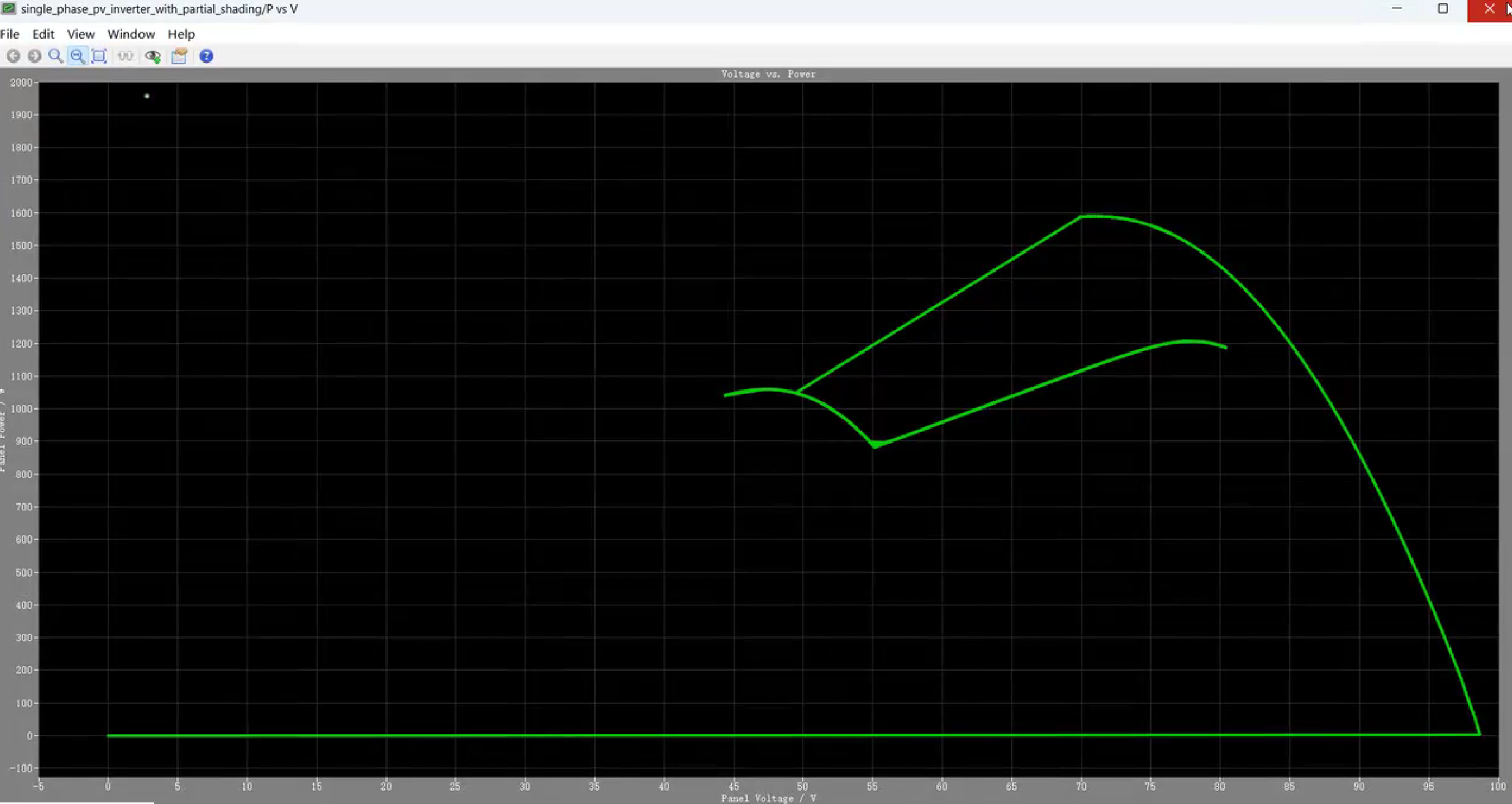 - 局部阴影工况:光伏阵列被部分遮挡,形成双峰值P-V曲线(峰值功率分别为180W与150W)。