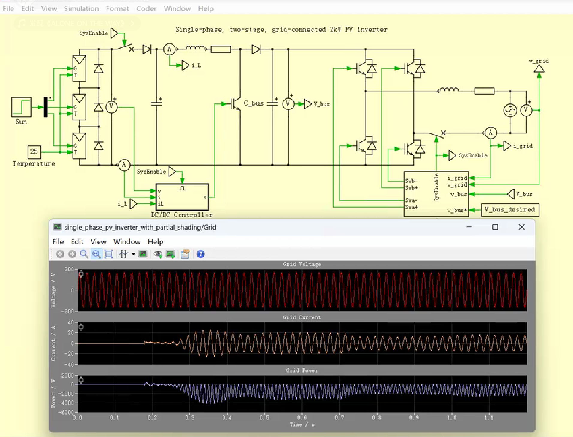 - 动态光照变化:光照强度在t=0.5s时由1000W/m2突降至600W/m2;
