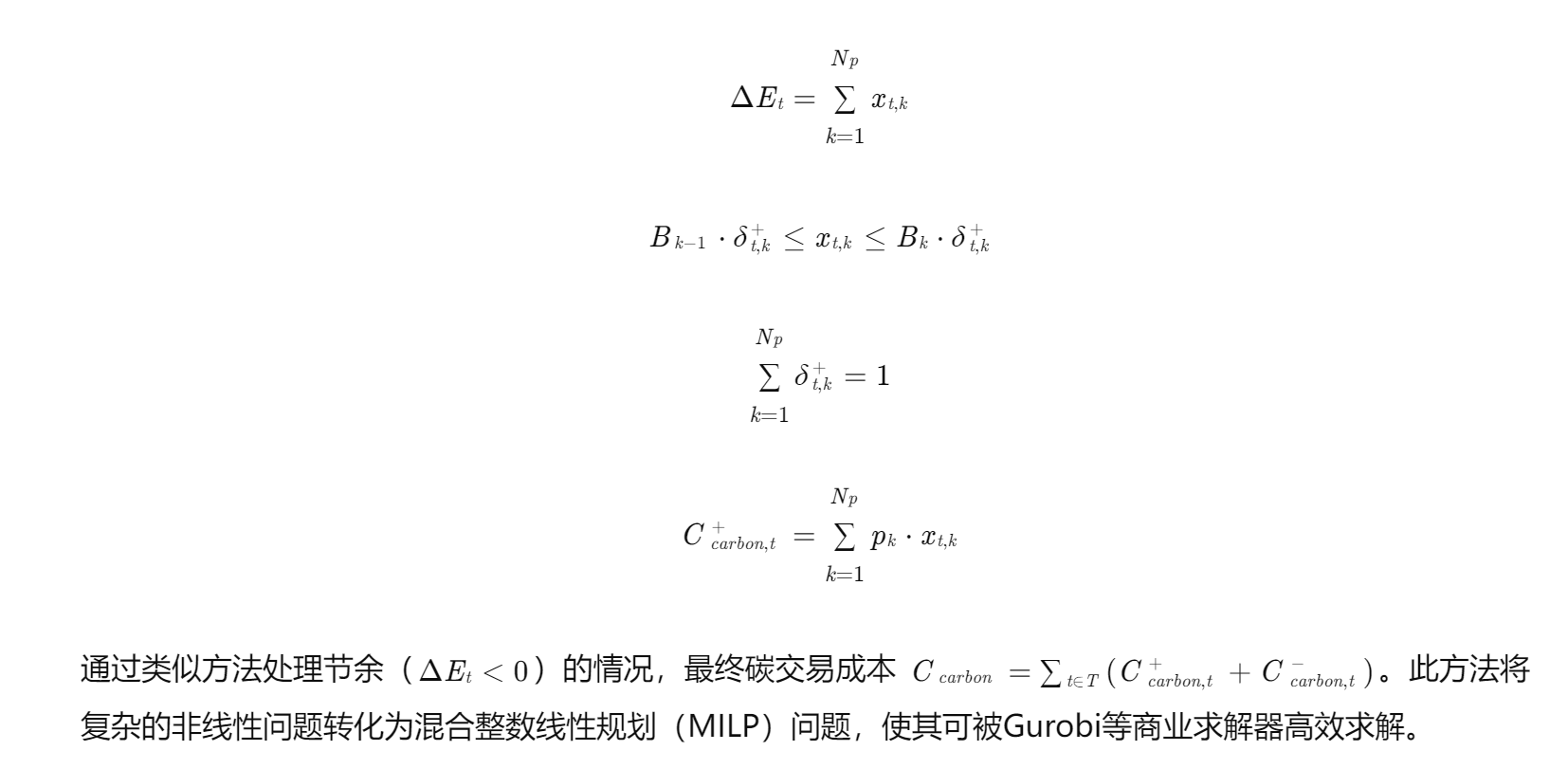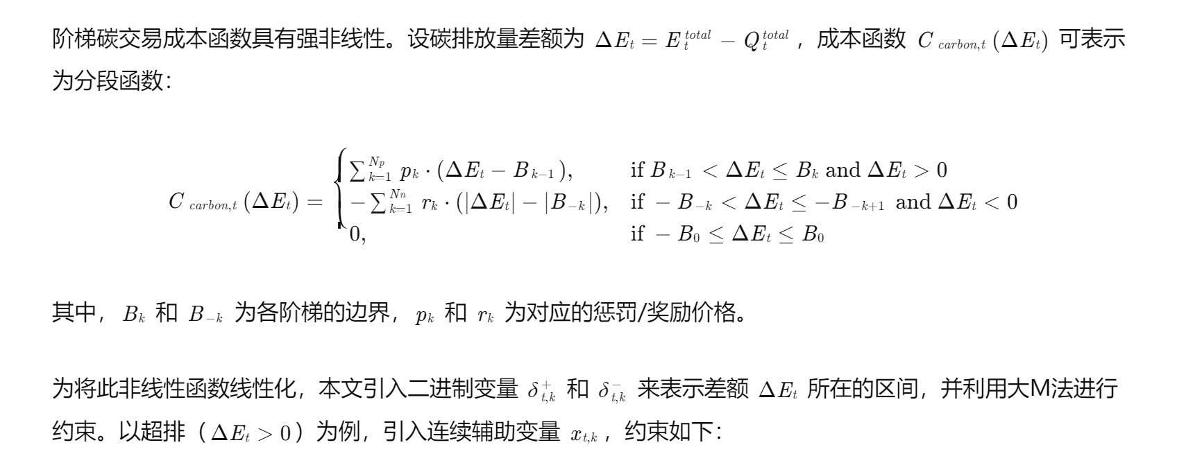 碳交易成本是模型的核心难点之一。其计算依赖于火电机组的总碳排放量与政府分配的免费碳配额之间的差值。