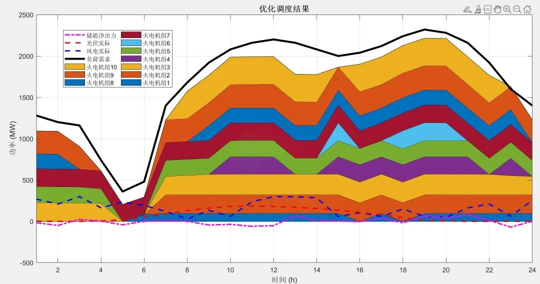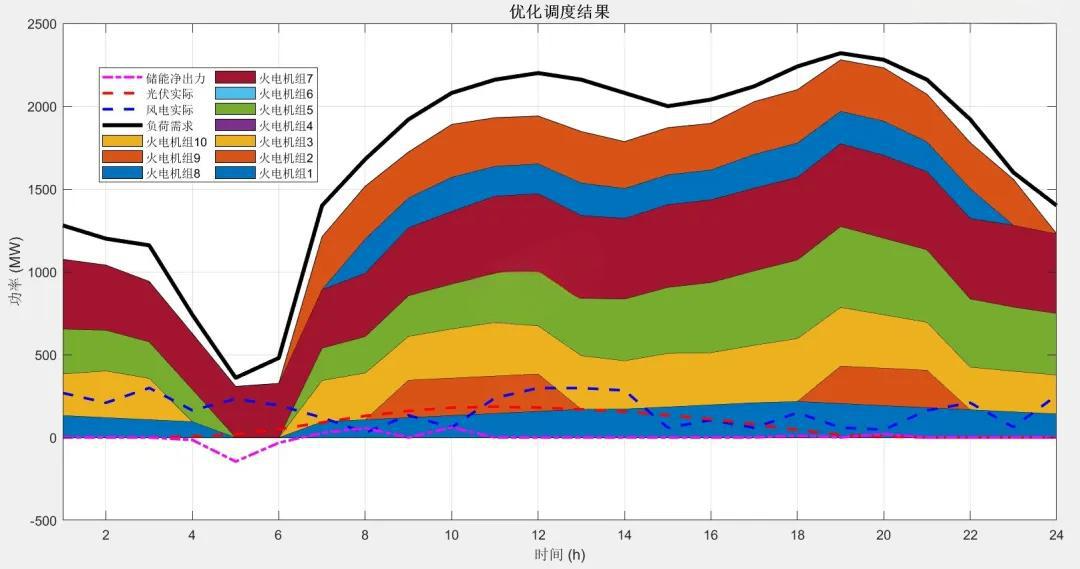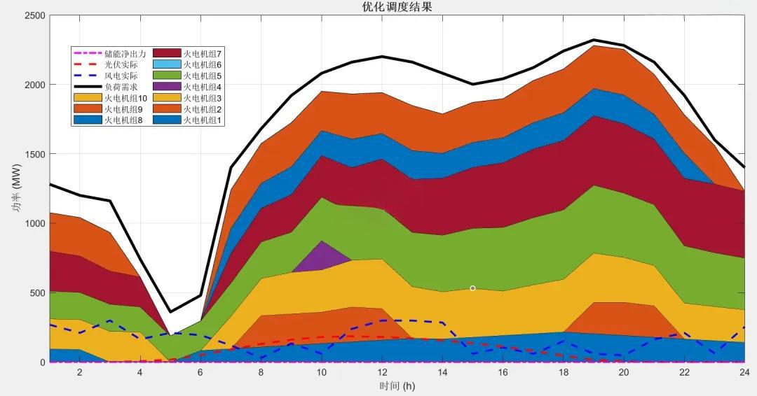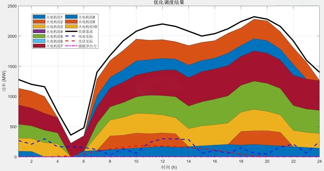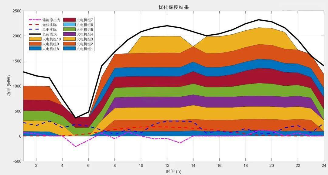 - 集成的N-1安全约束确保了调度方案在物理层面的可行性与鲁棒性,为电网安全稳定运行提供了保障。