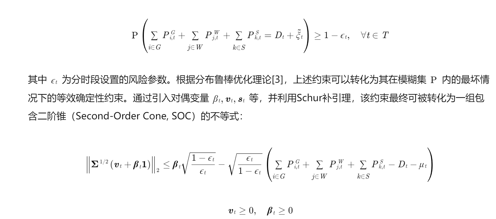 此转化确保了对于模糊集内任意分布,功率平衡约束以至少 1−ϵt 的概率成立。