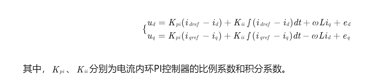 电流内环以电压外环输出的电流参考值为输入,通过PI控制器生成PWM调制信号,控制逆变器的开关器件,其控制方程为: