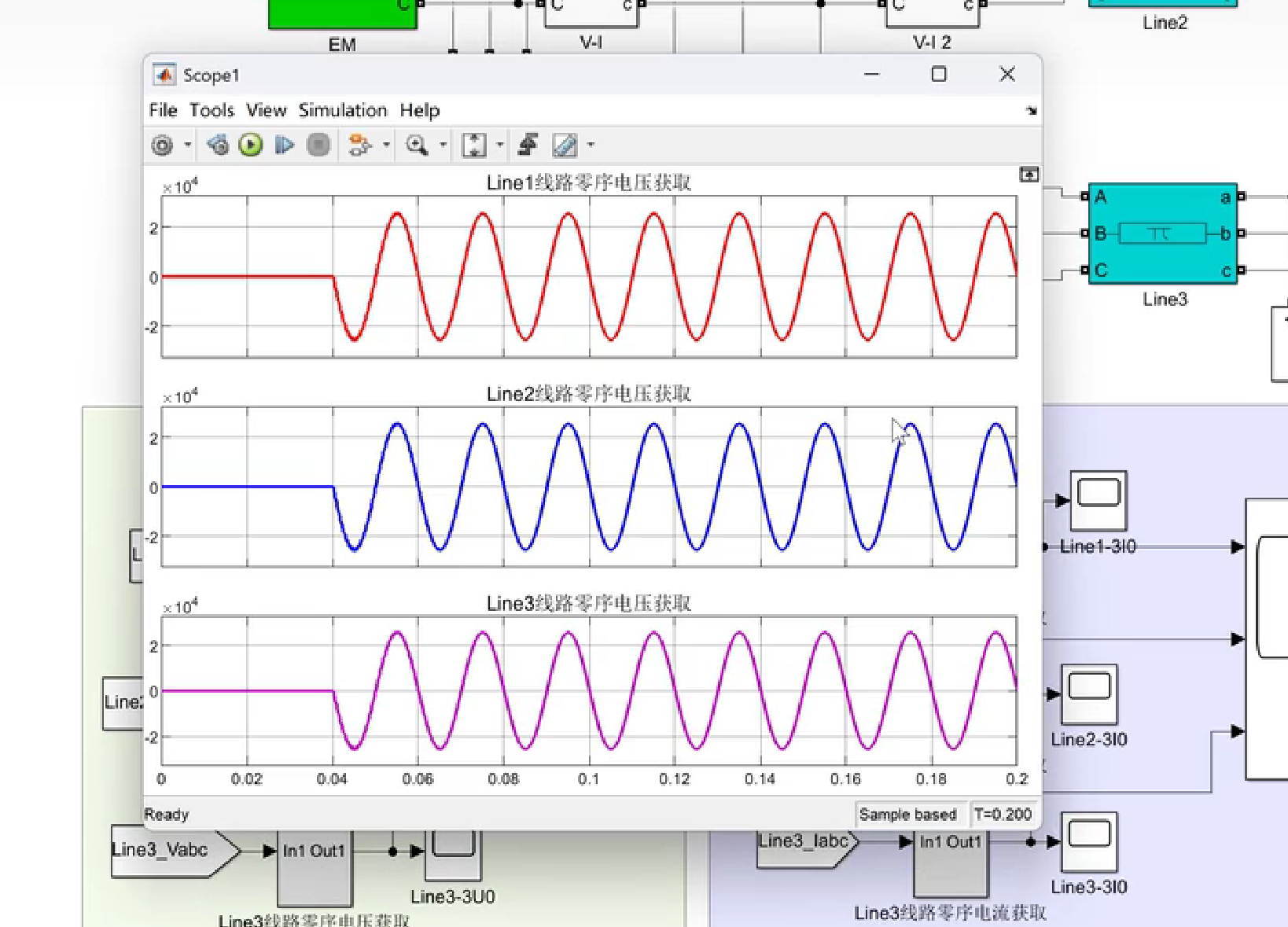 仿真参数设置参考实际配电网参数,以10kV系统为例,线路长度、单位长度电抗、对地电容等参数根据典型值设定;消弧线圈电感值根据过补偿方式设置,补偿度取5%—10%;零序电压/电流阈值用于触发保护装置,根据系统实际情况设定。