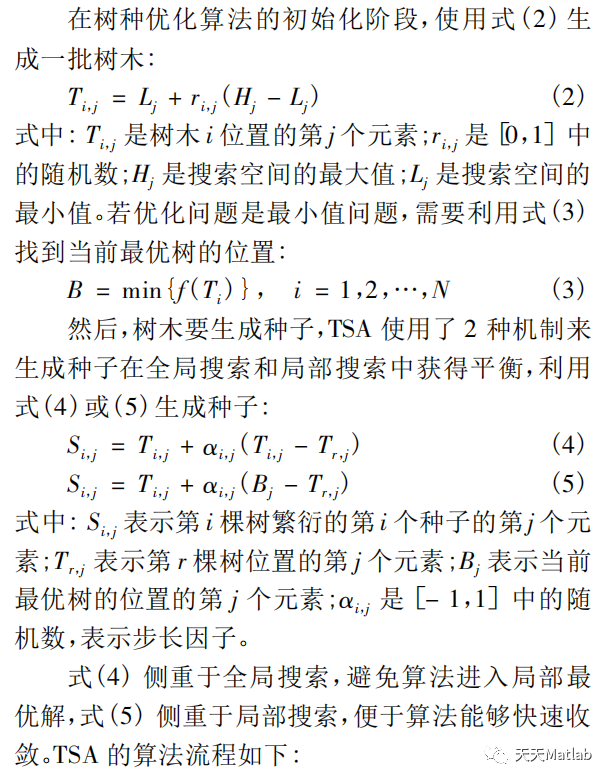 树种优化算法( TSA)是一种新兴的智能优化算法,是 2015 年由 Kiran 提出的,算法的思想是模拟大自然树木生长繁衍的过程。树种优化算法的结构简单,寻优能力较强,在彩色图像多阈值分割、短期电力负荷预测和结构损伤识别等领域中应用都获得了较好的效果。