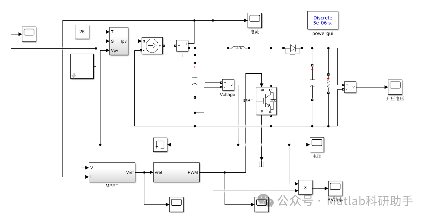 最大功率点跟踪(MPPT)控制器对于光伏(PV)系统至关重要,因为它可以确保系统在所有操作条件下都能从光伏阵列中提取最大功率。扰动观察法(P&O)是一种广泛使用的MPPT算法,因为它简单且易于实现。本文介绍了P&O MPPT控制器的Simulink仿真,并分析了其性能。