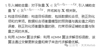 TNNR-ADMM 方法的基本思想是将秩约束问题转化为无约束优化问题,并利用 ADMM 算法进行求解。具体步骤如下: