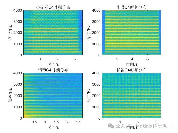 通过对四种乐器单音符频谱的分析,我们可以看到: