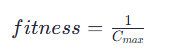 适应度评估: 计算每个个体的最大完工时间,并计算其适应度值。