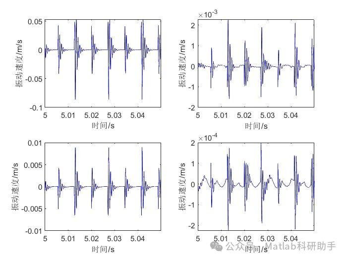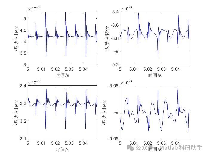 ODE45是MATLAB中一个高效的常微分方程数值解算器,基于龙格-库塔方法。本文利用ODE45求解上述非线性常微分方程组,获得轴承系统在不同故障模式下的时间历程响应。