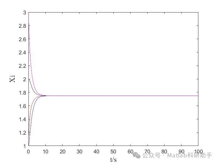 最后,需要指出的是,一阶无领导者一致性控制算法的收敛性依赖于网络拓扑结构和权重矩阵的特性。 更深入的研究需要考虑更复杂的模型,例如包含非线性动力学、时变拓扑结构、以及通信延迟和噪声等因素。 本文仅提供了一个简单的入门级Matlab实现,希望能为读者学习和理解多智能体一致性控制提供参考。 后续研究可以围绕更复杂的模型、更高级的控制算法以及实际应用场景展开。