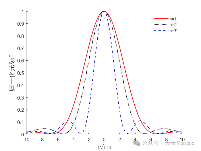 其中,A 为归一化常数,r 为径向坐标,m 为光束阶数,w₀ 为初始光束腰半径。 阶数 m 决定了空心光束的环形强度分布的特性,m=1 为基模空心高斯光束。