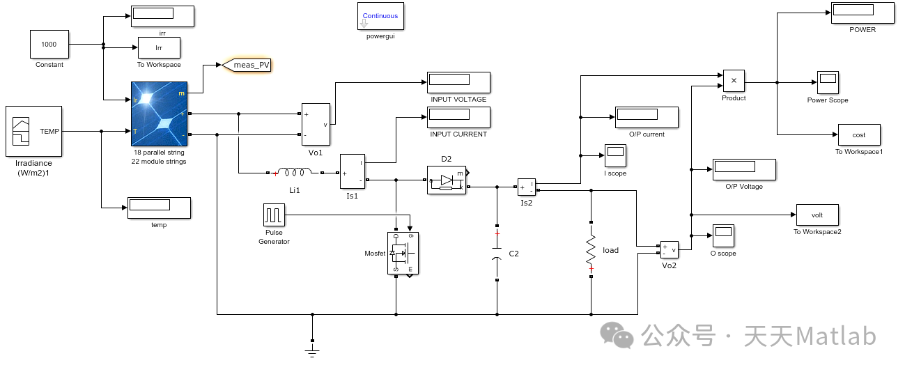 为验证本文提出的混合MPPT策略的有效性,进行仿真和实验验证。在仿真中,使用MATLAB/Simulink搭建光伏并网系统模型,模拟不同的光照强度和温度条件,比较不同MPPT控制策略的性能。实验验证中,搭建实际的光伏并网实验平台,使用数字信号处理器(DSP)实现MPPT控制算法,测试系统的响应速度和跟踪精度。