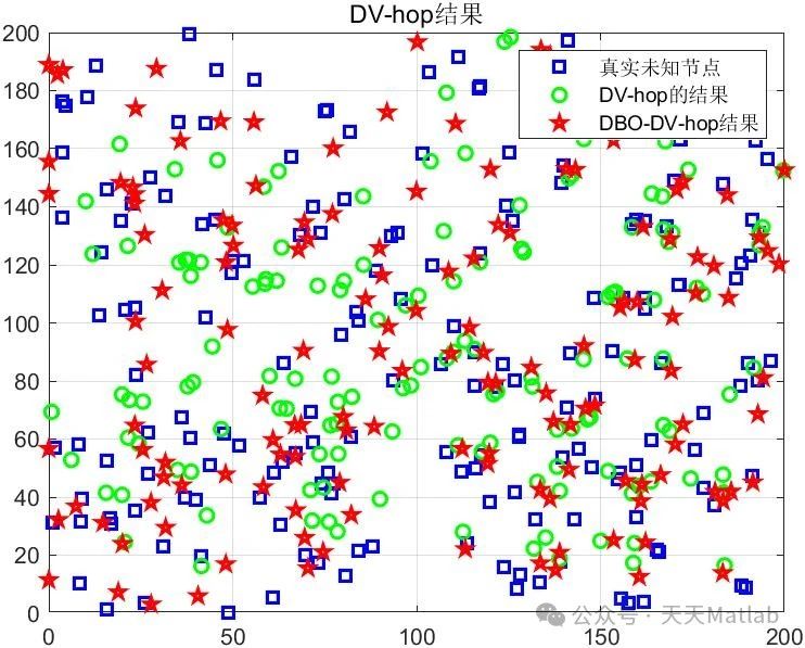 每跳距离估计阶段: 传统的DV-Hop算法采用算术平均值计算每跳距离,忽略了网络拓扑结构和信道环境的影响。本文利用DBO算法优化每个锚节点的每跳距离估计值,将其转化为一个优化问题,目标是最小化锚节点与其一跳邻居节点之间的距离误差。通过DBO算法的迭代搜索,可以获得更精确的每跳距离估计值,从而提高整体的定位精度。