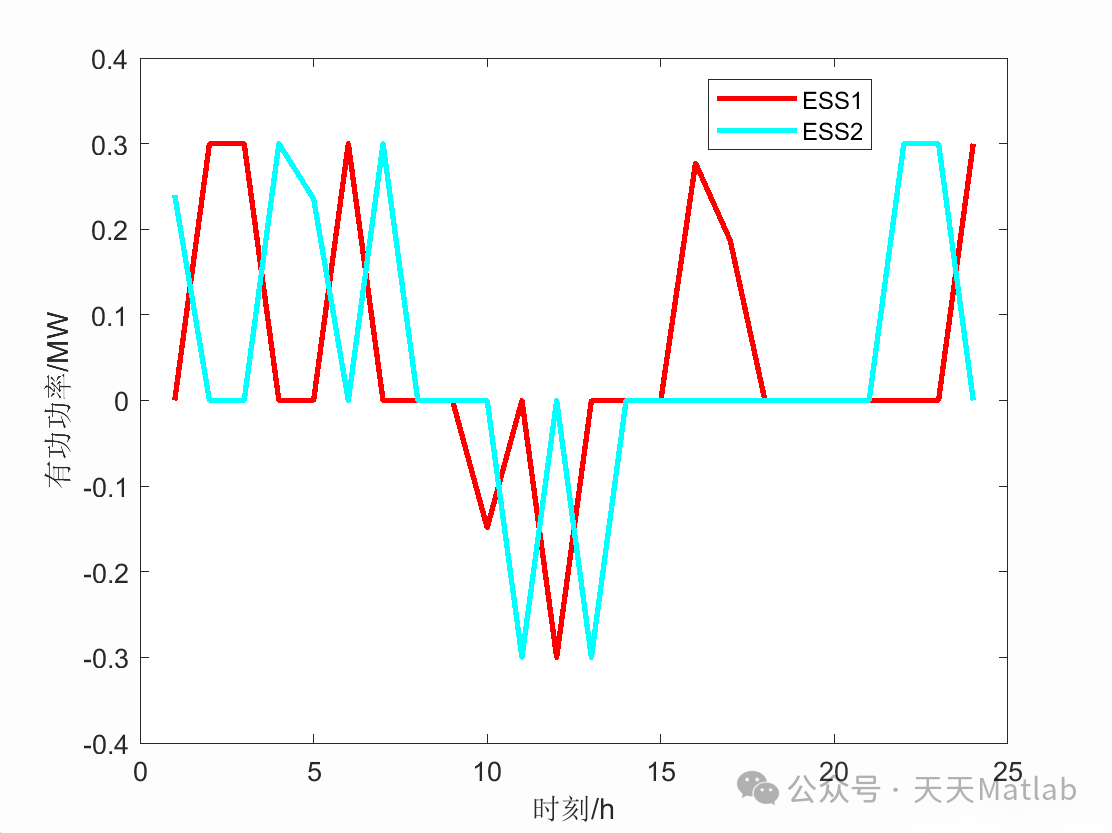 P_grid(t) + Σ P_DG(i, t) + Σ P_discharge(j, t) = Σ P_load(k, t) + Σ P_charge(j, t) + P_loss(t)其中,