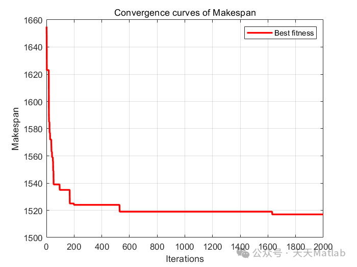 所有工件完成加工所需的最长时间,Cmax = max{C(πi, m)}, i=1,2,...,n,其中C(πi, m)表示工件πi在机器Mm上的完工时间。