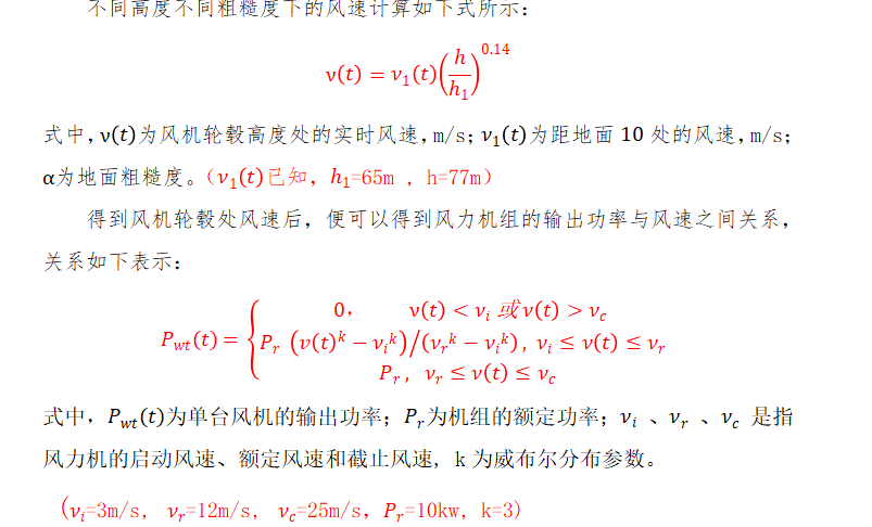 风机的输出功率一般参照生产商指导手册中的风机风速功率特性曲线确定。此处风速一般为风力机轮毂位置的平均风速。气象资料所给风速一般为距离地面10m高度处测得,因此使用时,必须通过转换才能得到风力机轮毂位置的平均风速。
