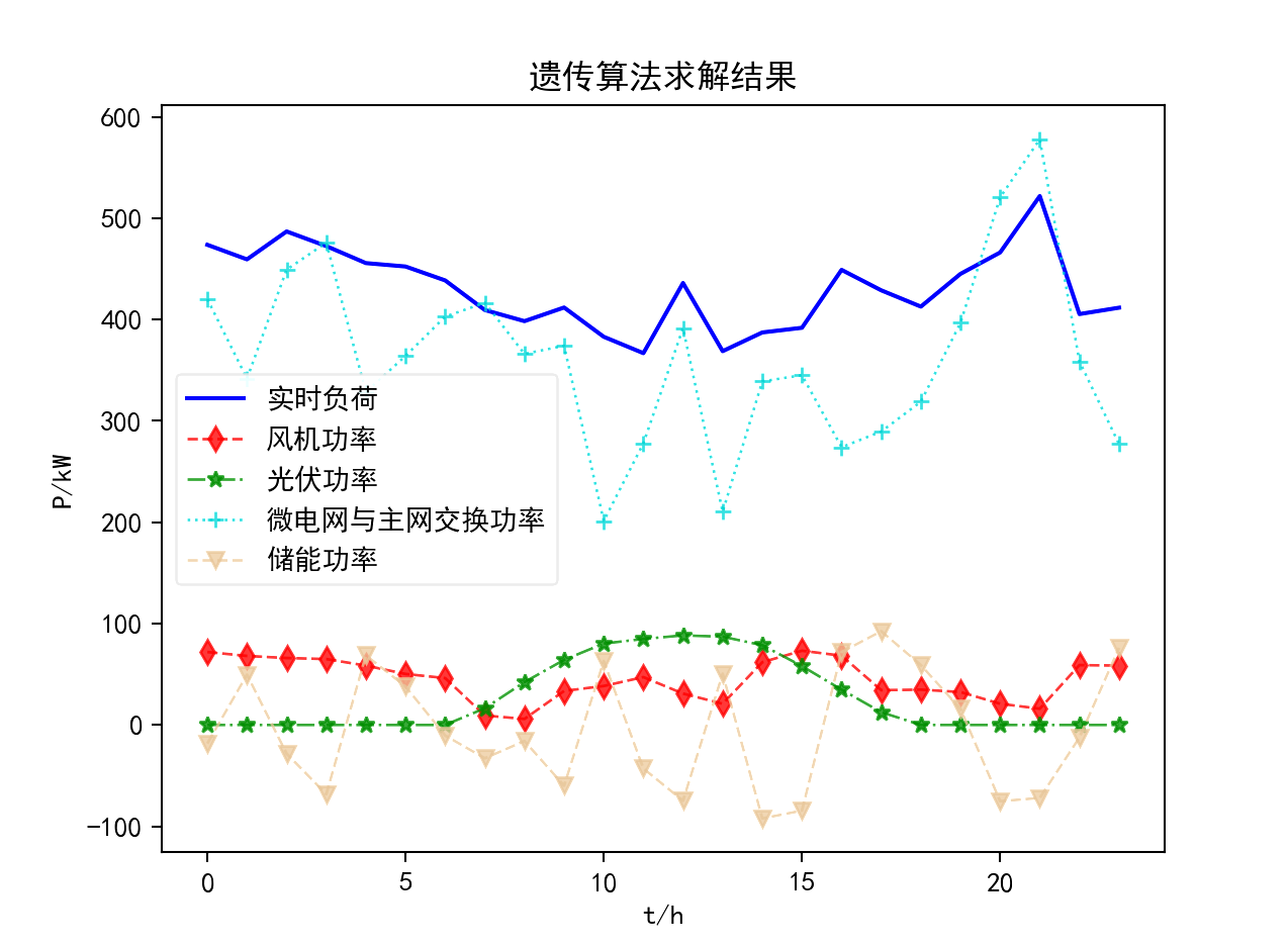 提出了基于遗传算法的优化求解方法,设计了适应问题特性的染色体编码、交叉和变异操作,有效求解购售电策略和储能充放电计划。