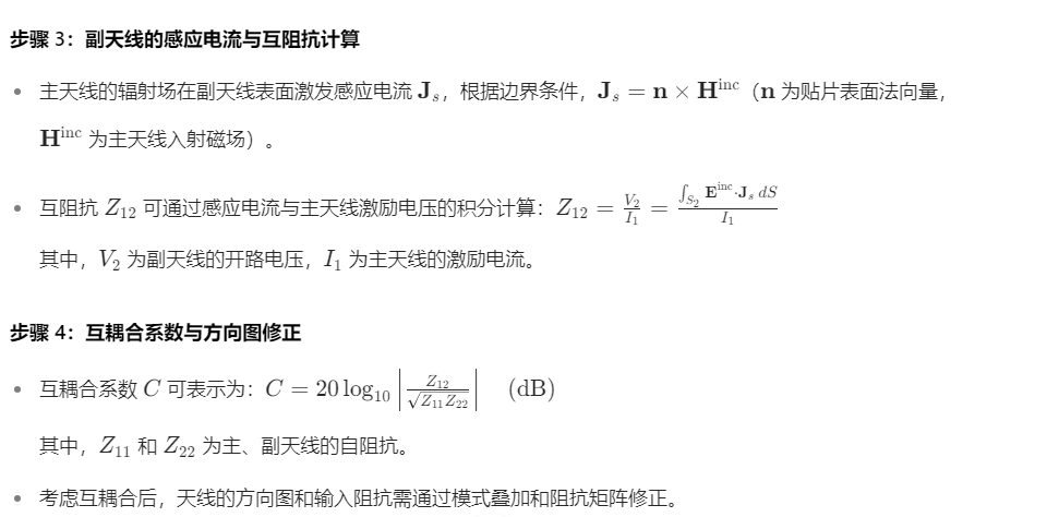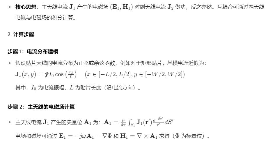 :基于洛伦兹互易定理和场 - 电流反应理论,将互耦合视为两天线电流分布之间的电磁相互作用。