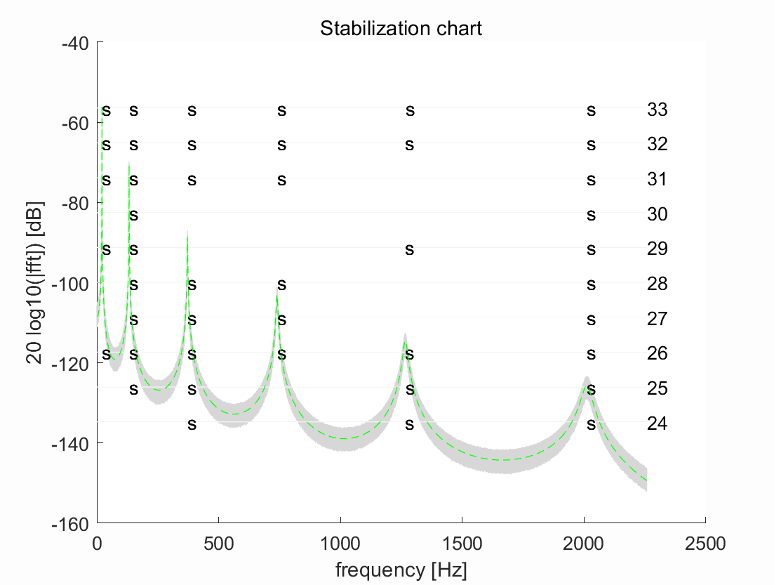稳定图的核心作用在于筛选真实模态参数,剔除虚假模态。真实模态参数在不同模型阶次下的估计值会逐渐收敛到一个稳定值,在稳定图中表现为随着模型阶次增加,对应模态的参数值形成一条稳定的曲线或聚集在一个狭小区域内;而虚假模态的参数值则会随着模型阶次变化呈现无规律的波动,无法形成稳定趋势。通过观察稳定图中参数的收敛情况,可准确判断哪些模态是真实存在的,从而提高模态参数估计的准确性。