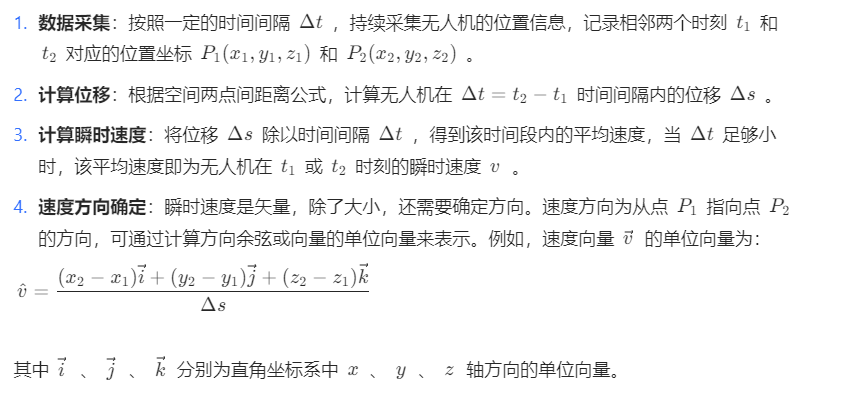 上述文档涵盖了无人机瞬时速度计算的多方面内容。若你对某些计算细节、误差分析想进一步探讨,或有其他修改需求,随时和我说。