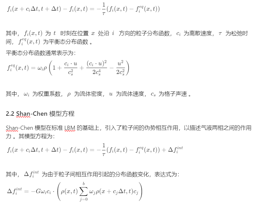二、Shan-Chen 格子玻尔兹曼模型原理