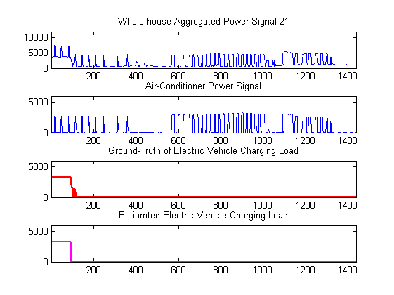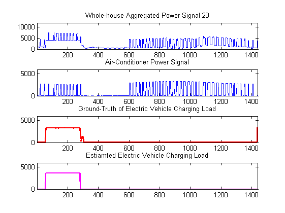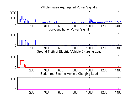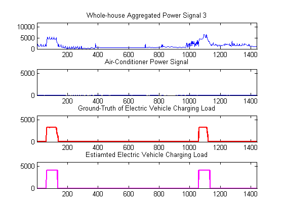 非侵入式负荷监测(NILM)是智能电网和智能家居领域的一个重要课题。许多能量分解算法已被提出,用于从单一的总功率信号观测中检测出各种单个电器。然而,由于家用电动汽车(EV)充电是近期才出现的,因此很少有研究针对住宅环境中电动汽车充电的能量分解问题。近期研究表明,电动汽车充电对智能电网有较大影响,尤其是在夏季。因此,电动汽车充电监测已成为能量分解领域中一个更为重要且紧迫的缺失环节。在本文中,我们提出了一种从总功率信号中分解电动汽车充电信号的新方法。该方法能够有效减轻来自空调(AC)的干扰,即便在存在空调功率信号的情况下,也能实现对电动汽车充电的精确检测和能量估算。此外,所提出的算法无需训练,计算量小,估算精度高,并且在低采样率 1/60 Hz 下记录的数据中也能良好运行。当该算法在从 11 户家庭采集的近一年实际数据(总计相当于 125 个月的数据)上进行测试时,电动汽车充电能耗估算的平均误差为每月 15.7 千瓦时(而电动汽车充电的实际平均能耗为每月 208.5 千瓦时),分解电动汽车充电负荷信号的平均归一化均方误差为 0.19 。