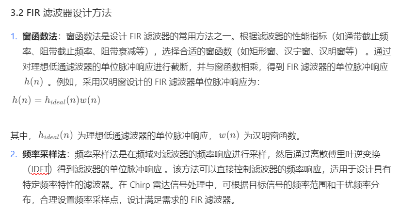 三、FIR 滤波器在 Chirp 雷达信号处理中的应用