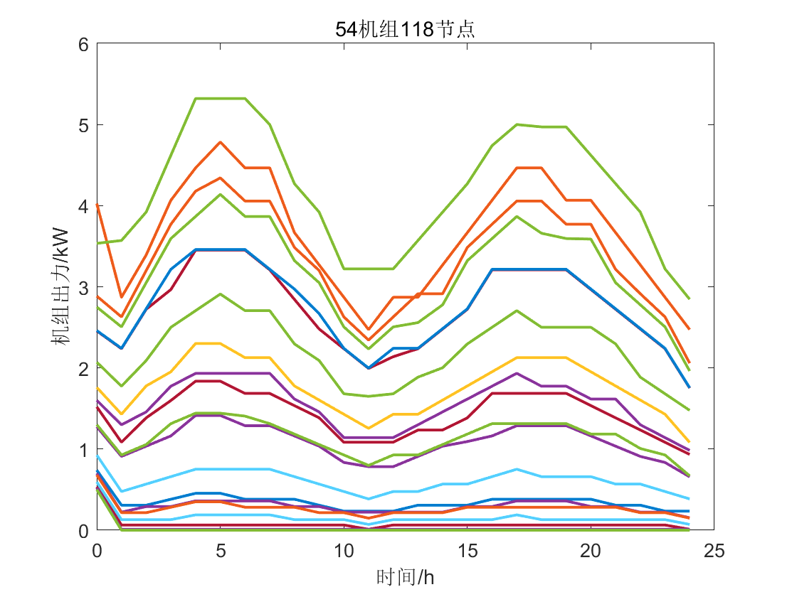 电力系统机组组合优化调度是电力系统运行管理中的关键环节,其核心目标是在满足电力系统安全稳定运行和电力供需平衡的前提下,合理安排发电机组的启停计划与发电功率,以实现运行成本最小化、能源利用效率最大化 。IEEE 标准测试系统作为电力系统研究领域广泛使用的基准模型,其中的 IEEE14 节点、IEEE30 节点和 IEEE118 节点系统具有不同的规模和复杂程度,能够模拟多样化的电力系统运行场景。研究在这些典型系统上的机组组合优化调度问题,有助于深入理解不同规模电力系统的运行特性,为实际电力系统的优化调度提供理论支持和技术参考,对提升电力系统的经济性、可靠性和可持续性具有重要意义。