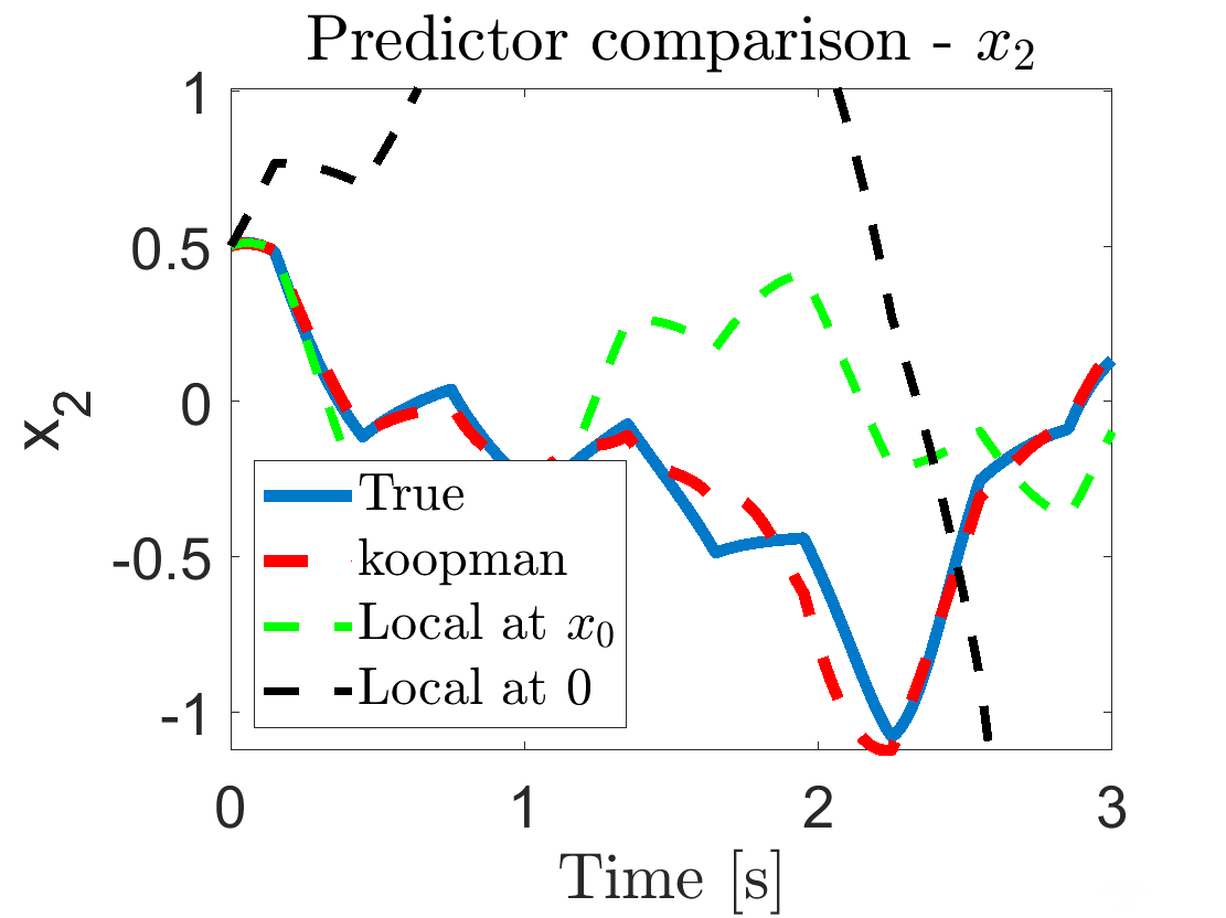 在不受控制的情况下,这个过程相当于对与非线性动力学相关的 Koopman 算子进行数值近似。Koopman 算子就像是一个神秘的 “幕后操控者”,它控制着一组可观测函数的演变,而这些可观测函数就像是非线性系统的 “探测器”,能够捕捉到系统内部的各种动态信息。通过对 Koopman 算子的研究,我们可以深入了解非线性系统的行为特征,揭示其隐藏的奥秘。