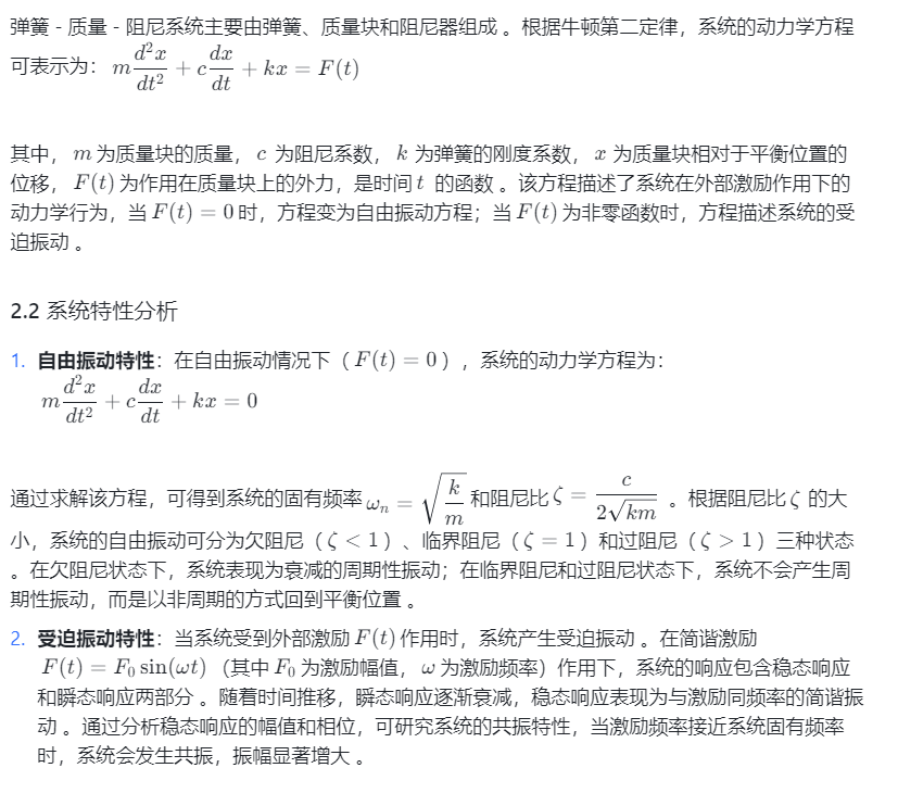 二、弹簧 - 质量 - 阻尼系统理论基础