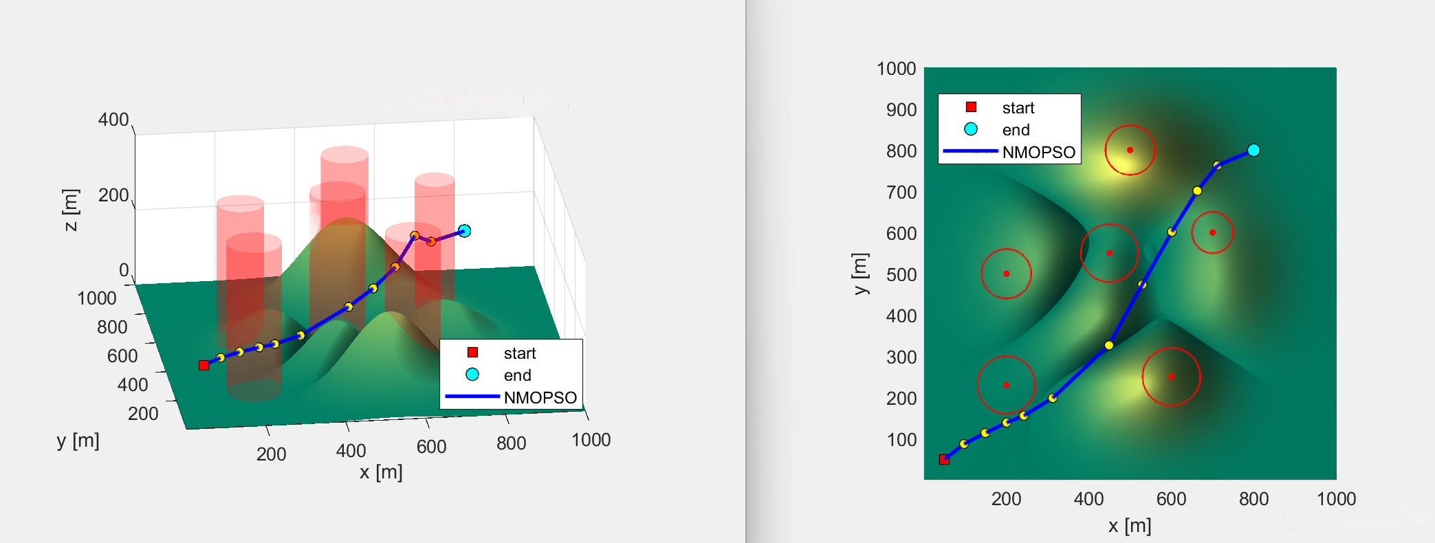 在此背景下,2025 年提出的基于城市场景下无人机三维路径规划的导航变量的多目标粒子群优化算法(NMOPSO)应运而生。该算法针对城市场景的特点,引入导航变量,对传统粒子群优化算法进行了改进,旨在为无人机在复杂城市场景中规划出更优的三维路径。