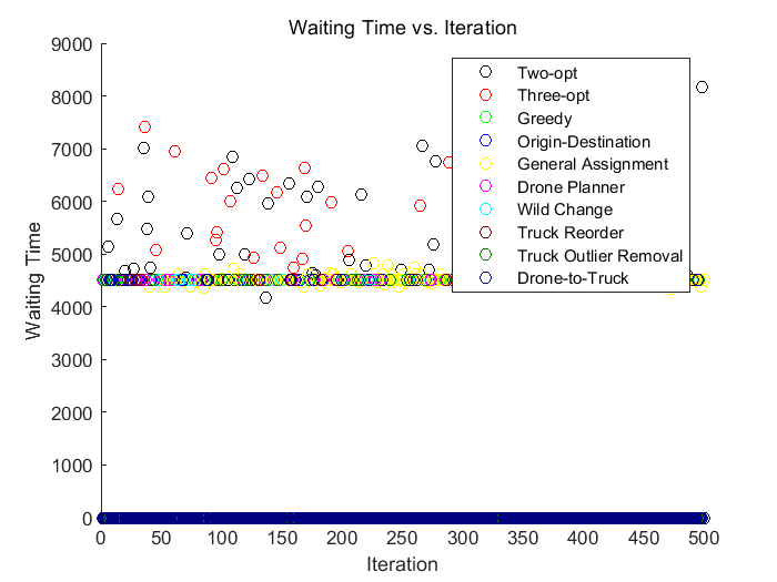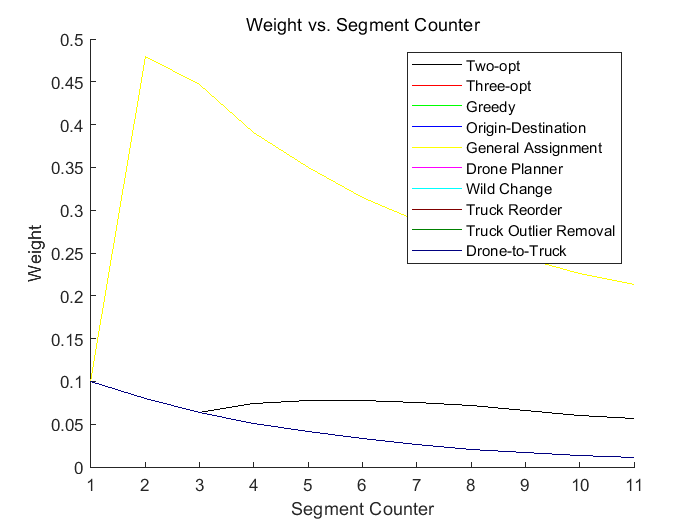 算法首先会对客户位置进行分析,结合卡车的平均行驶速度、无人机的续航能力与飞行速度,将客户初步划分为 “潜在卡车服务客户” 和 “潜在无人机服务客户”。例如,距离仓库过远且周边客户密集的区域,优先纳入卡车的服务范围;而距离卡车可能经过路线较近、位置相对孤立的客户,则暂归为无人机的服务候选池,为后续的精准调度打下基础。