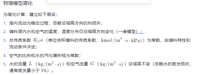 在工业循环水系统中,逆流强制通风水冷却塔是实现水冷却的关键设备,其核心功能是通过空气与水的逆流接触,利用蒸发散热和接触传热降低水温。塔高设计直接影响传质效率和设备成本,而最小空气流量则决定了冷却过程的能耗与可行性。本文将从物理原理出发,结合传质与传热理论,详细阐述逆流强制通风水冷却塔的塔高计算方法,以及在给定总传质系数和流体条件下最小空气流量的确定过程。