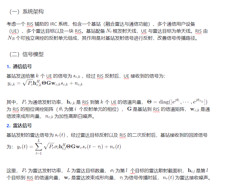 二、RIS 辅助的双功能雷达和通信系统模型