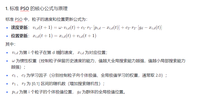 粒子群算法(PSO)的核心思想是模拟鸟群觅食行为 —— 每个 “粒子”(对应一条候选路径)通过自身历史最优解(个体极值 pbest)和群体历史最优解(全局极值 gbest)不断调整飞行方向与速度,最终收敛到最优解。但直接将标准 PSO 应用于 AUV 路径规划会存在 “易陷入局部最优”“无法处理约束条件” 等问题,需针对性改造。