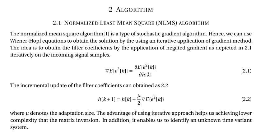 本项目采用正则化归一化最小均方(NLMS)算法生成自适应滤波器的系数
